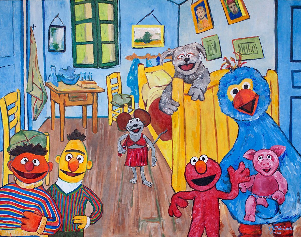 Vanuit het Van Gogh Museum ben ik gevraagd om een schilderij te bedenken om kinderen verder kennis te laten maken met Van Gogh. Zo zijn we op het idee gekomen om Van Gogh's bekende schilderij 'De Slaapkamer' te plaatsen in een Sesamstraat-voorstelling met de bekendste dieren.